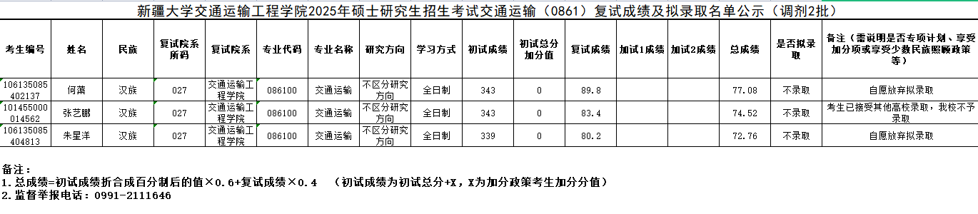 bwin中国官网2025年硕士研究生招生考试交通运输(0861)自愿放弃名单公示(调剂2批)