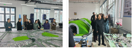 会议室座谈结束后,与会人员前往交通运输工程学院实验室参观,王兵介绍了学院近些年在交通规划与管控、城市交通流组织、应急救援等领域的建设成果。