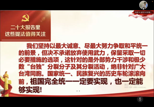 为学习贯彻党的二十大精神,研读二十大报告内容,进一步推动学生党建工作提质增效,交通运输工程学院学生党支部于10月30日召开了以结合所学专业特点分享交流学习二十大报告心得体会为主题的微党课,活动由学生党支部赵一凡主持进行。